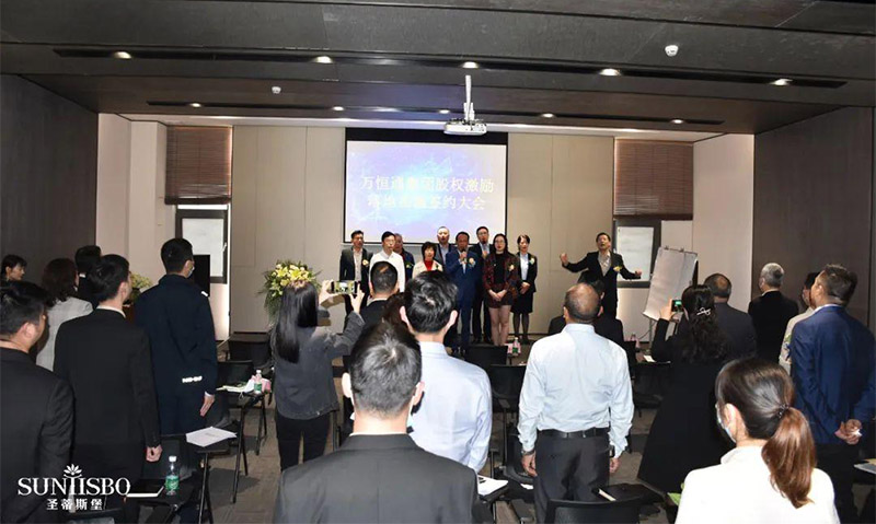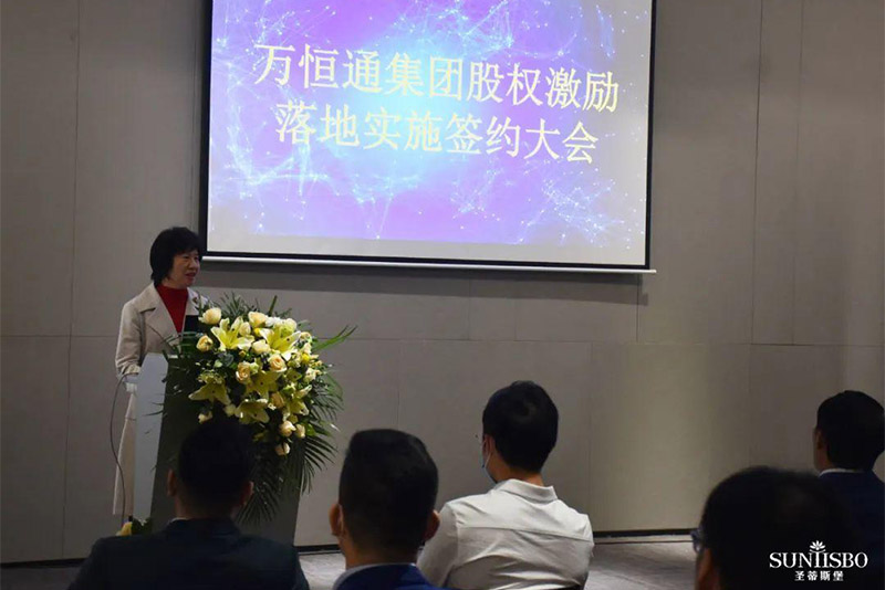 接下来,集团副董事长梁碧霞女士上场致辞,她讲到:永利304集团在王董的领导下,从1982年一直奋斗至今,已走过39年的历程,这离不开大家共同的努力,她号召在座同仁为自己加油鼓掌。她进一步强调:此次的股权激励既是感谢大家以往为永利304集团的付出,同时也是为了将来大家拥有更美好的生活。永利304此次股权激励不是终点而是起点,我们要挖掘和吸引更多优秀的人才加入永利304。只要我们上下一条心,内外一股劲、坚定信心,就能把永利304做成百年企业,把圣蒂斯堡做成有美誉度、消费者喜欢的、享誉全球的家具品牌!